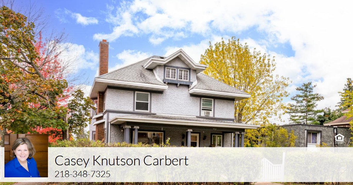 Spectacular American Four Square home full of charm, character, and incredible craftsmanship! This historic gem boasts hand-carved porch pillars, ornate mahogany woodwork, beamed ceilings, beautiful hardwood floors, and a second-floor deck with views of Lake Superior. Step into the main floor parlor/sitting room and flow into a spacious living room featuring a handsome decorative fireplace and a large picture window that lets in tons of natural light. The formal dining room showcases the original built-in buffet and offers ample space for hosting dinners. The large kitchen includes a bright breakfast nook and a perfect blend of original and updated cabinetry. A stunning open hand-carved stairway leads you to the second floor, where you’ll find four generously sized bedrooms and a full bath with a tiled tub surround. The third floor adds even more space with a 5th bedroom, cozy sitting room with views, and a full bath with a clawfoot tub. Located on a corner lot with a newer 2-car garage, 1-car tuck under, and newer boiler. A truly special home that’s both welcoming and rich in architectural history—don’t miss your chance to make ityours!
